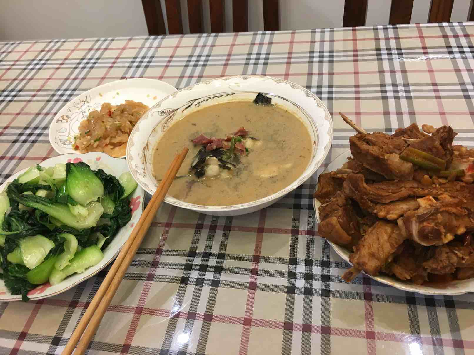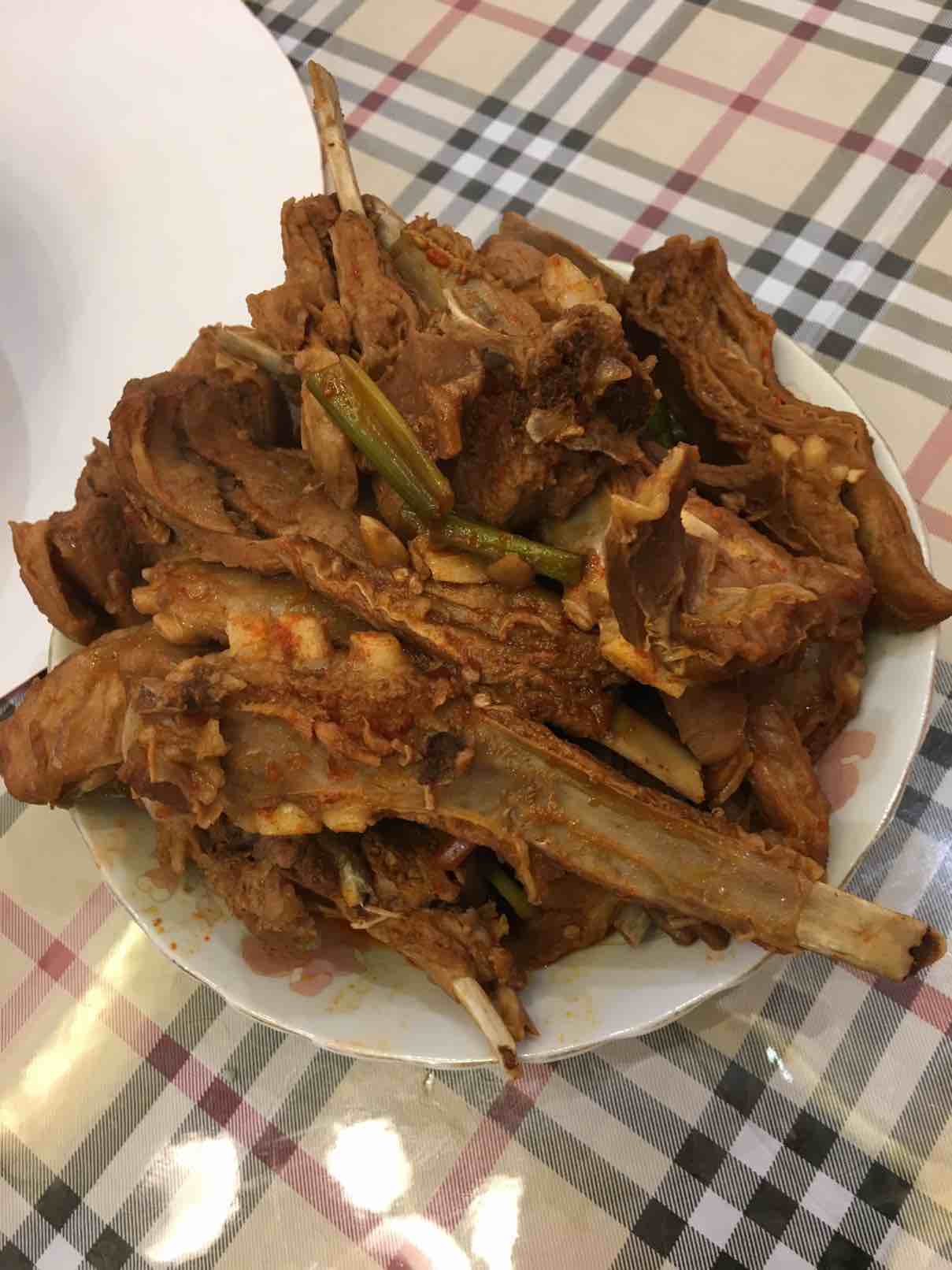 今晚老公烧了羊肉,忍不住吃了几块