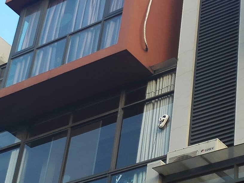 没拍到机器人?没见过。想看看是怎么擦外窗玻璃。