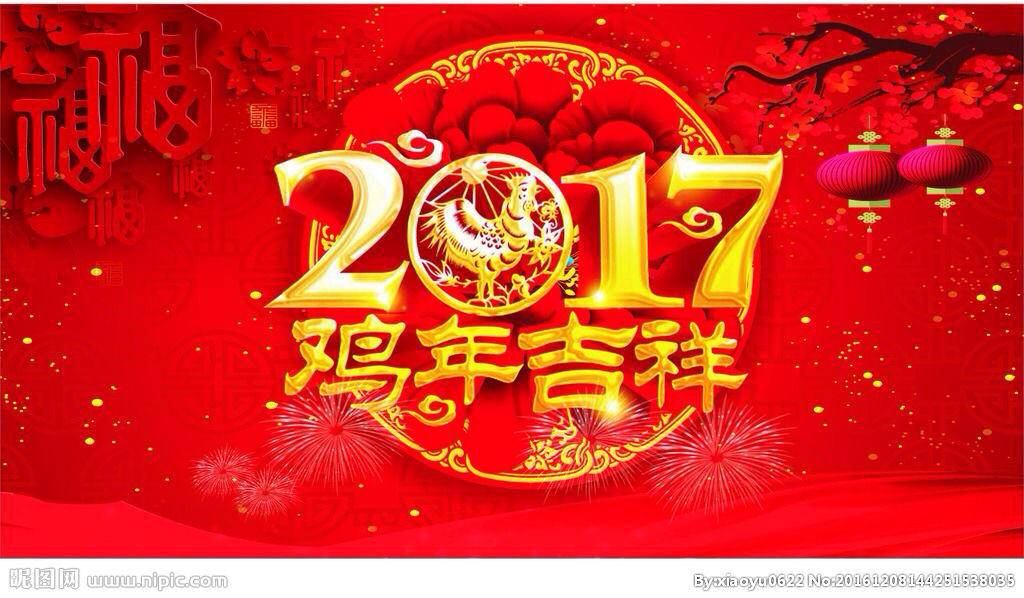 送2016,迎2017!我在这里给大家拜年啦!祝愿大家鸡年吉祥!阖家幸福!身体健康!事事如意!新春愉快!