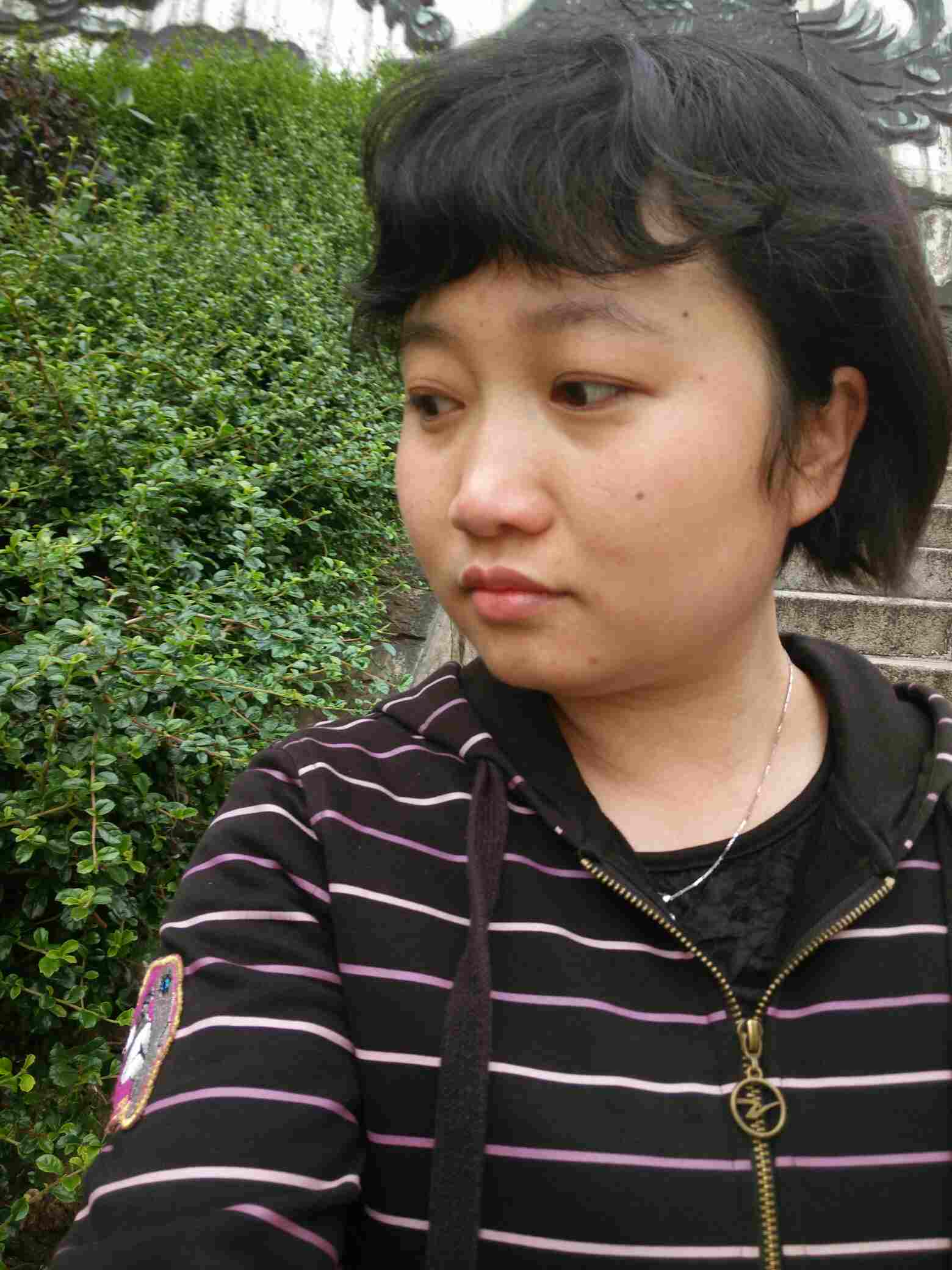 体重没怎么增加,脸盘子倒是更大了。看我病后新长的头发,都是卷卷的,任性地蓬松着。