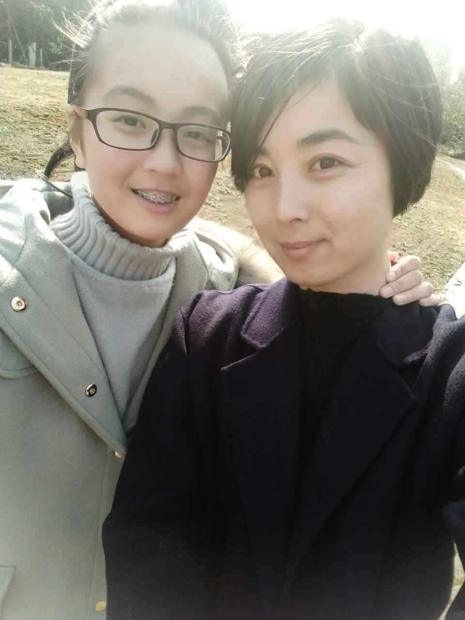 两个美女、妈妈眼睛好漂亮