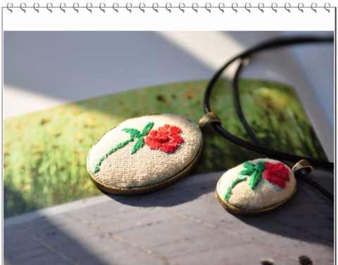 空闲时逛逛手工店也不错,每次进去总要淘个宝回来,买了块麻布,还有两个项链配件。最主要是玩个心情,女儿说小的给她,大的我自己。第一次绣花🌸虽然乱七八糟,但自己绣的还是很别致独一无二,开心就好😄