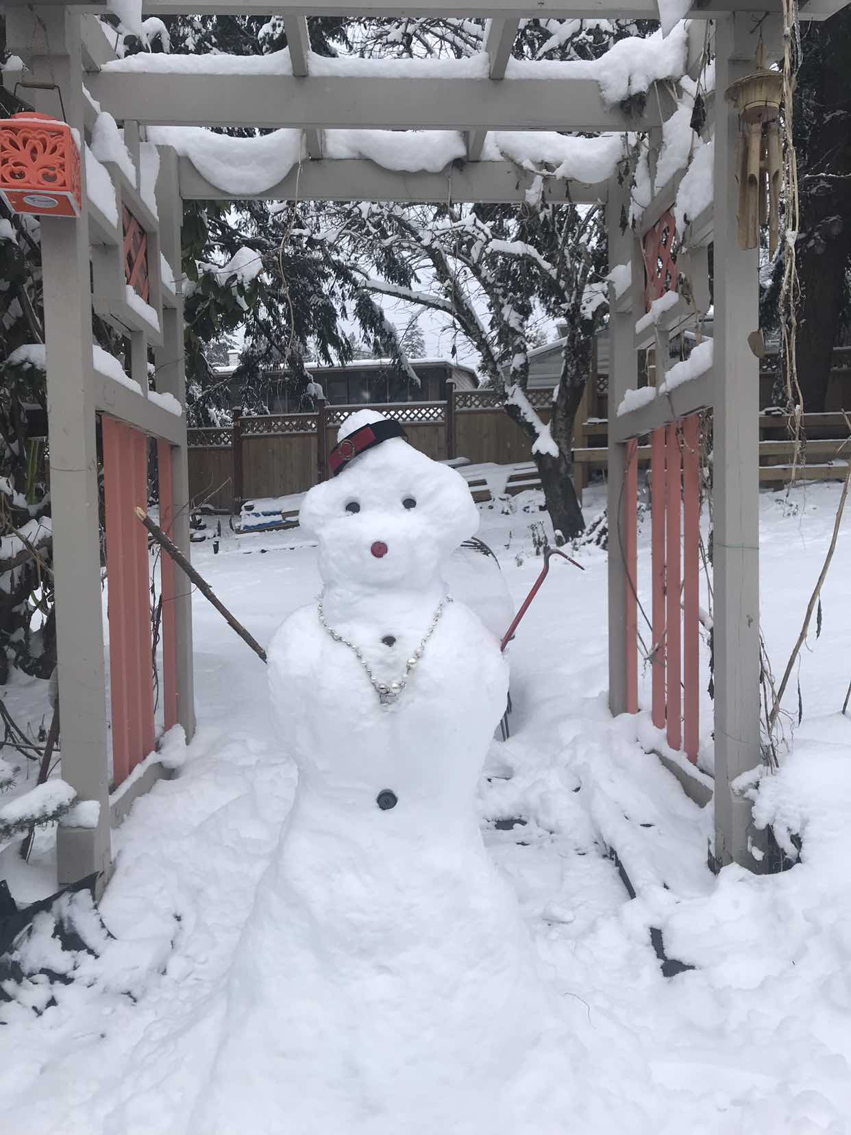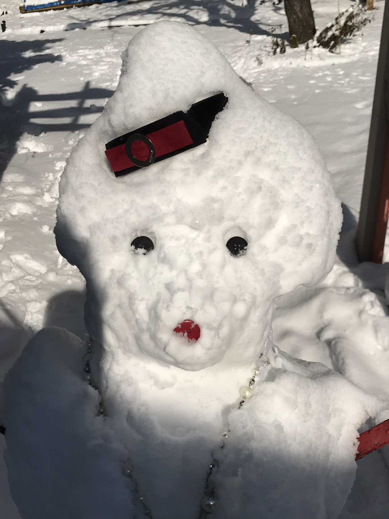 穿戴整齐,来到院里,说干就干,不到半小时,我的雪人☃️堆好啦。 今年是猪年,我就堆了一个高小姐。地主家的千斤,名副其实的白富美。