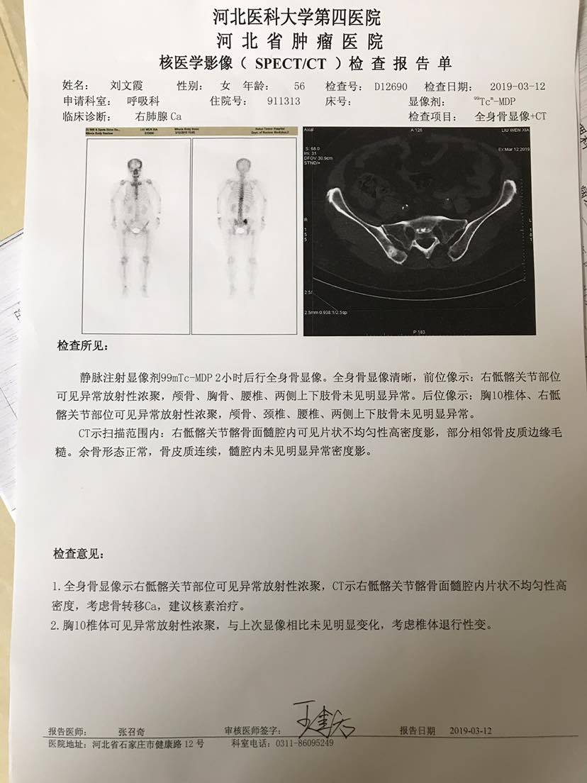 妈妈患肺癌已经有三年了,这三年来一直在接受治疗到现在,下面是妈妈检查以及治疗的过程。2010年10月,妈妈体检出肺癌IV期,纵隔淋巴转移,肝部转移,去省肿瘤医院复查,做了PET-CT,结果一样,省肿瘤