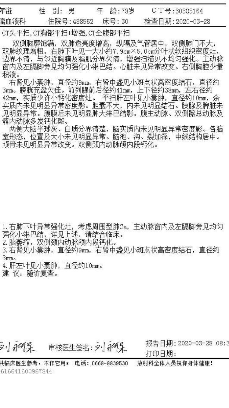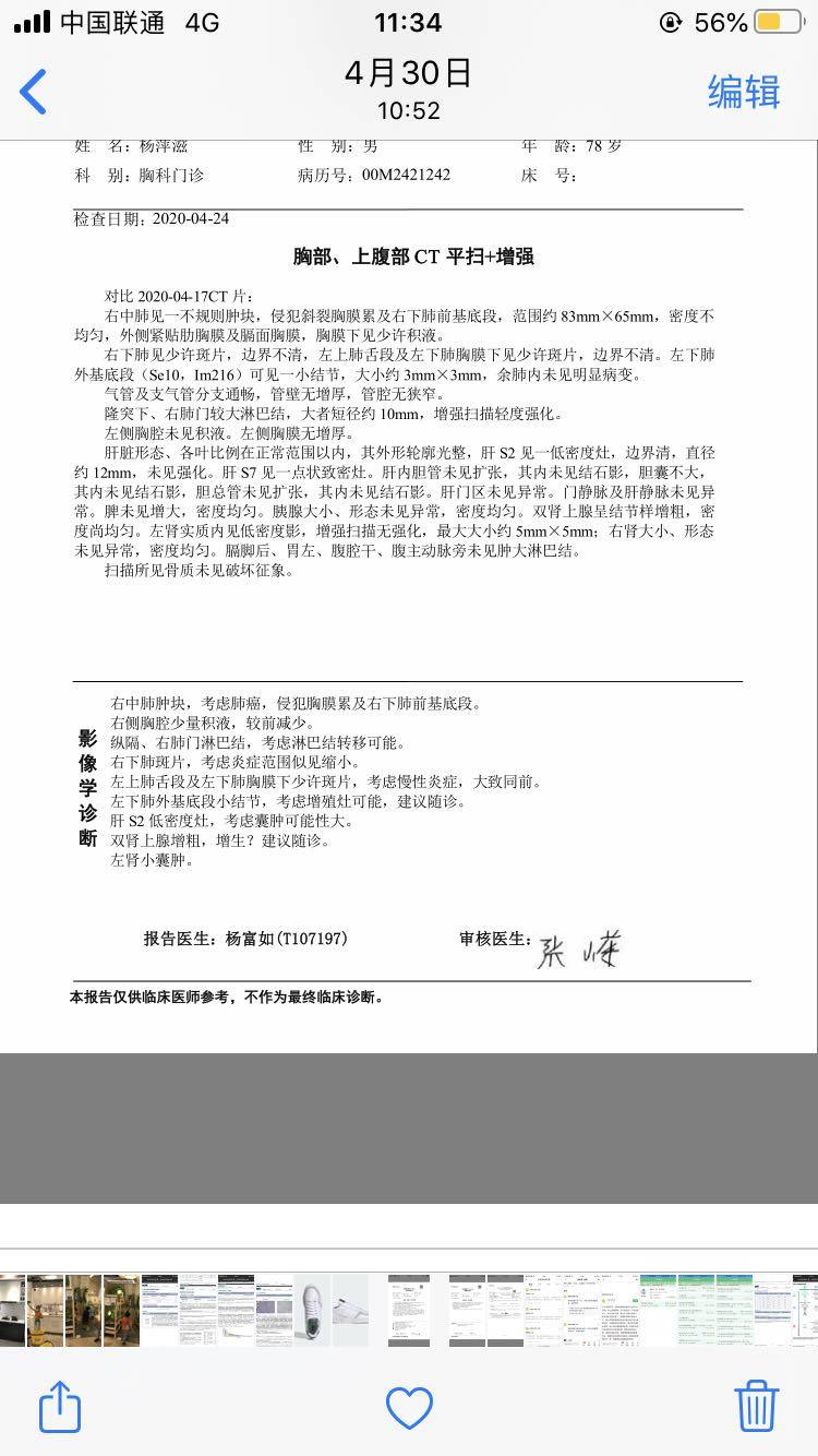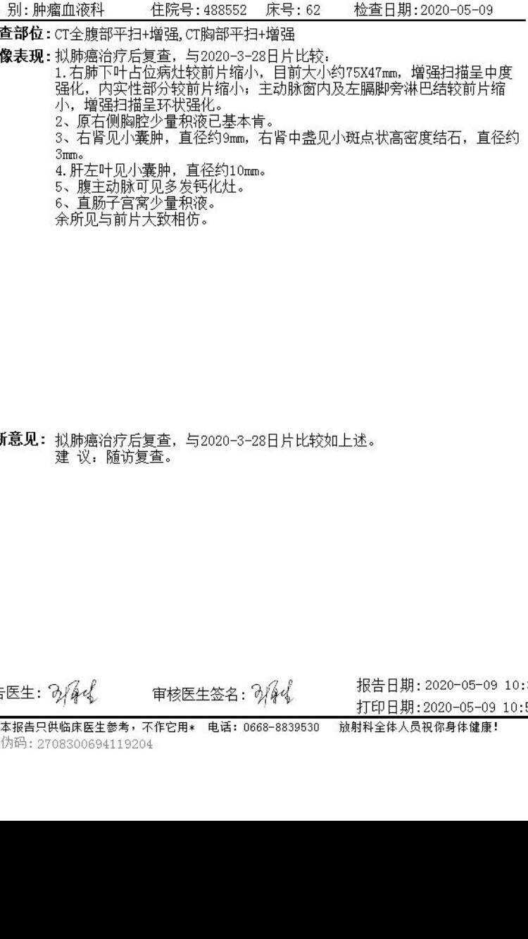 今天父亲化疗前ct结果,不知道是不是好消息