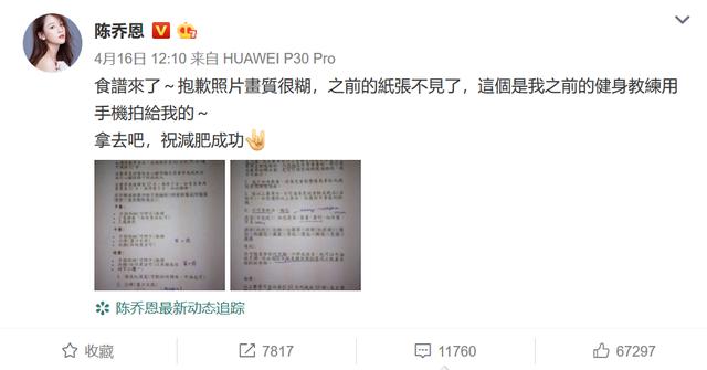 陈乔恩四月份发布了一份号称 “10天减3公斤”的食谱,健身教练给出