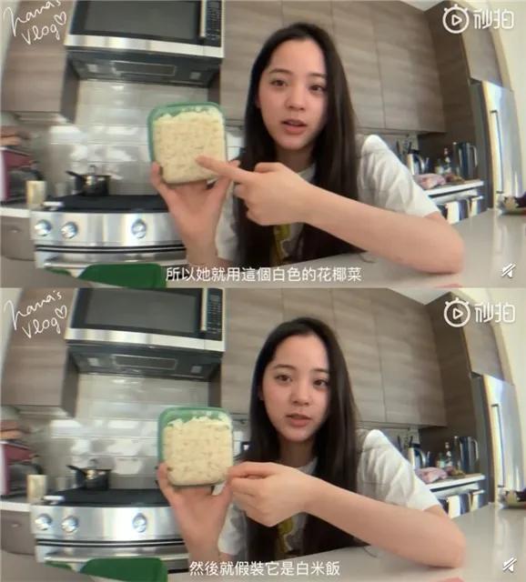 欧阳娜娜的无米炒饭和上面关晓彤的生菜三明治有异曲同工之妙。她们都是用蔬菜来替代传统食物中的碳水化合物。我有一次直播里也做过!