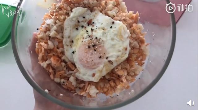 在欧阳娜娜的vlog中,她搭配一起炒的食材是鸡蛋和鲑鱼(三文鱼),利用了蒜和黑胡椒来调味。实际操作的时候我们选择可以更多,比如加入韩国泡菜,虾仁,牛油果或是加入一些芝士调味也不错,爱吃辣的也可以放老干妈哦!