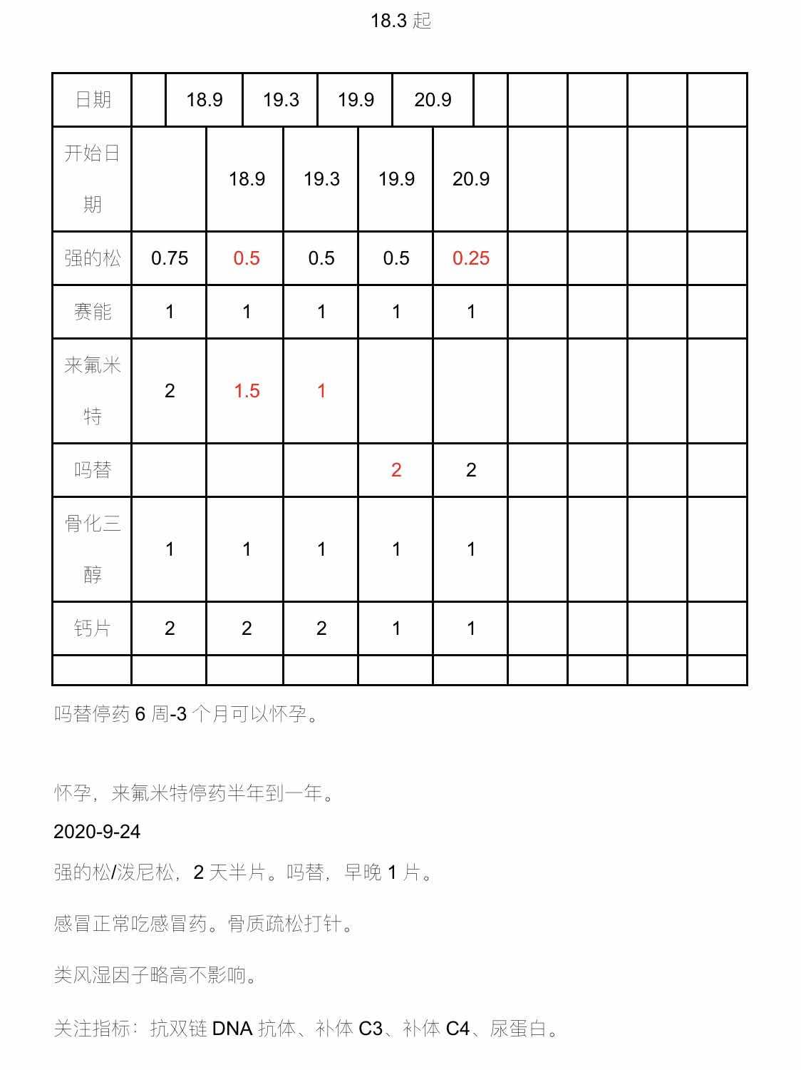 刚看到这个表里药量变化的都标了红,真是细心。