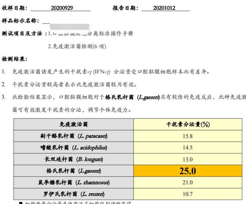 然后是益生菌检测结果,显示格氏乳杆菌对免疫调节有最好的效果。