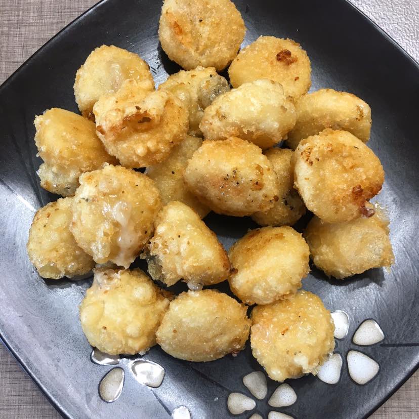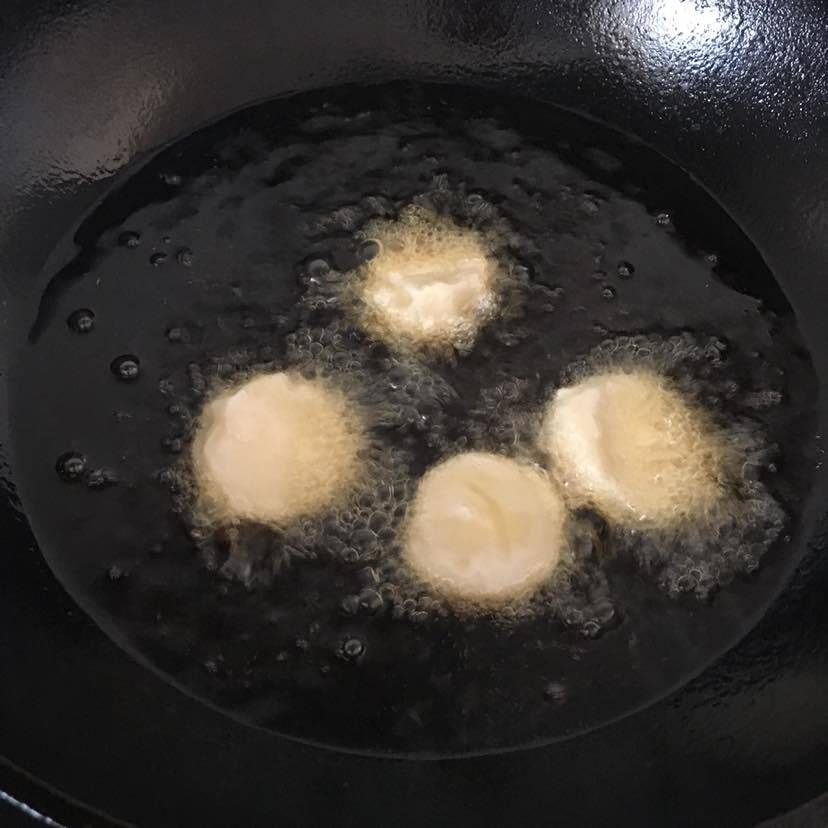 又炸了点北方元宵,这是早市买的。这种元宵是滚出来的,适合蒸完后在炸一下。