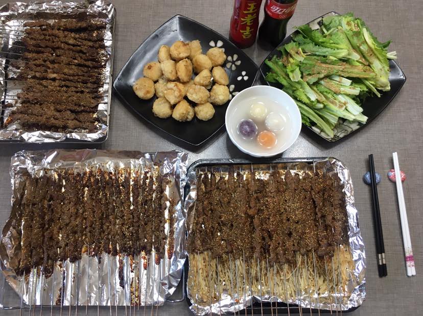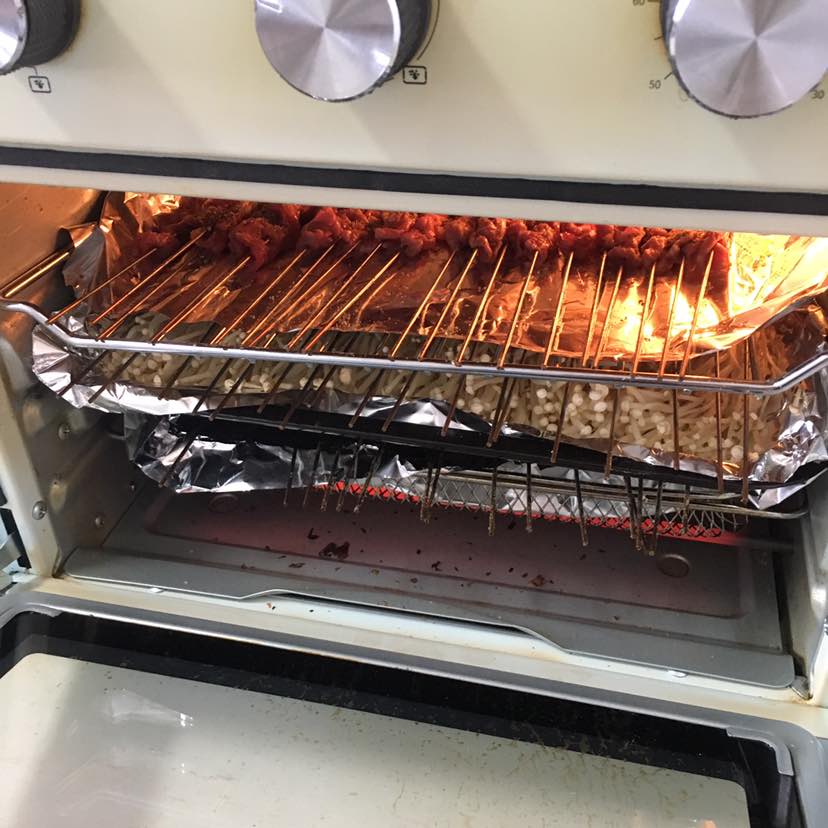 以前我们家吃串,在楼下小区用炭火烤,病后不让吃明火烤制的食物,索性就用有空气炸功能的烤箱烤。但是比起炭烤差远了😢