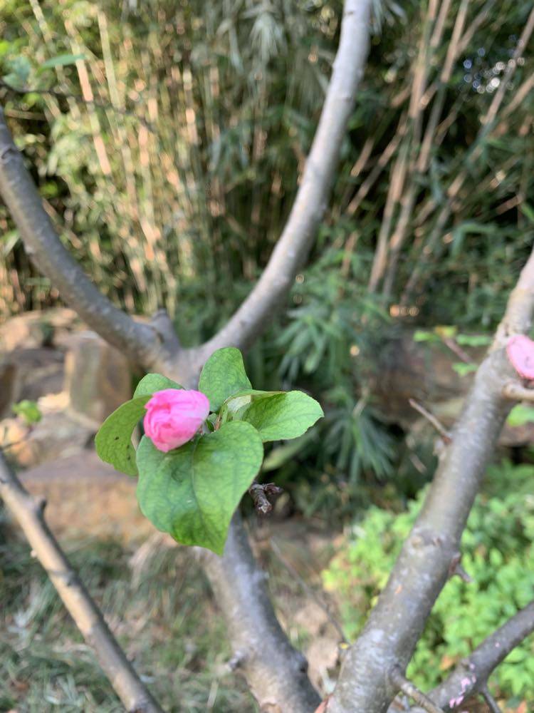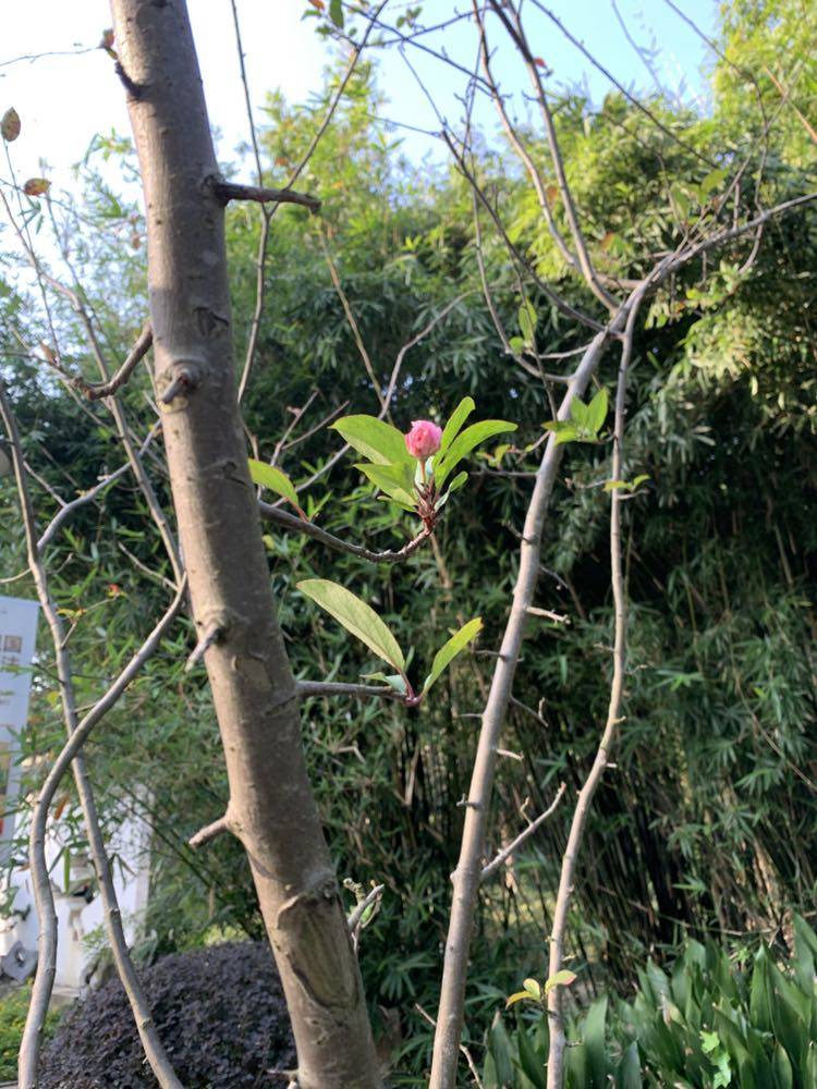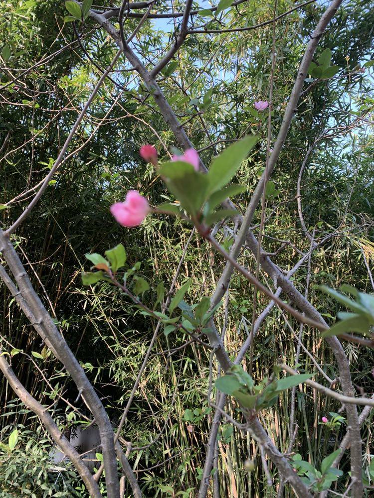 今天,路过海棠树旁,看到几朵海棠己经开了。