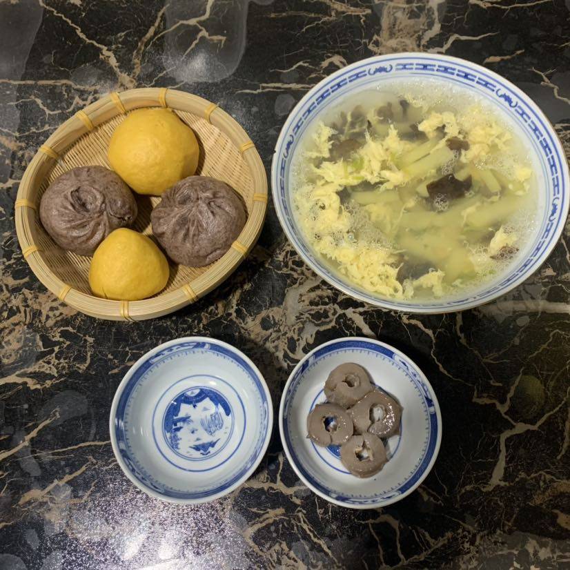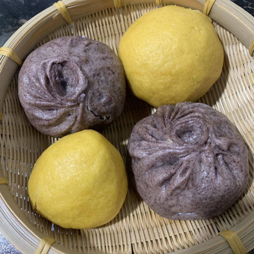 早餐🥣玉米面窝窝头和紫薯白菜猪肉胡萝卜包子