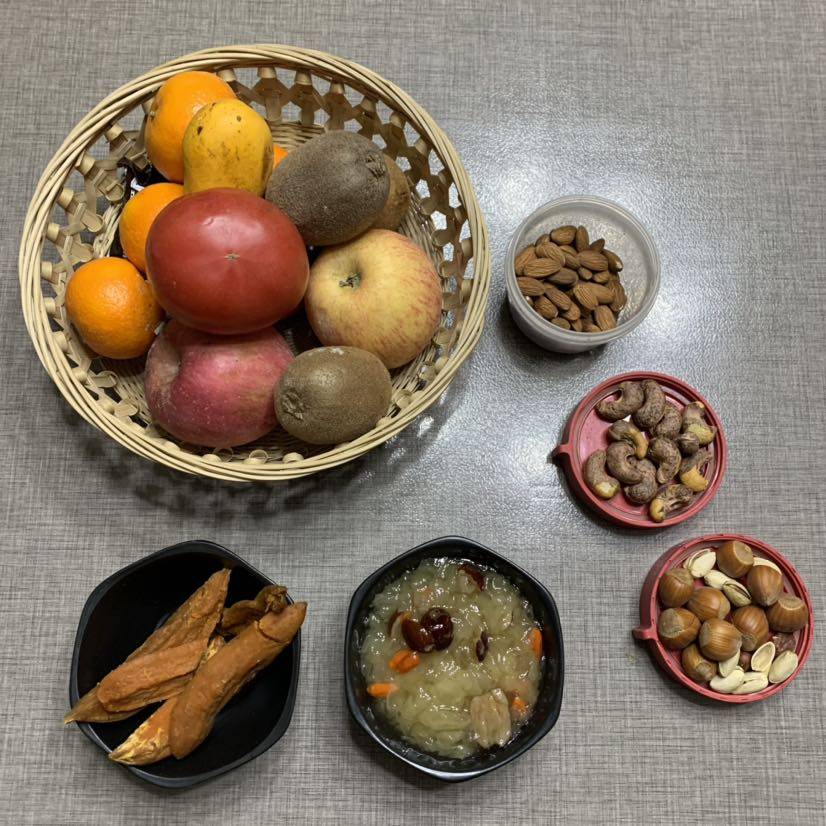 晚餐:自制地瓜干和银耳羹,水果🥭坚果🌰