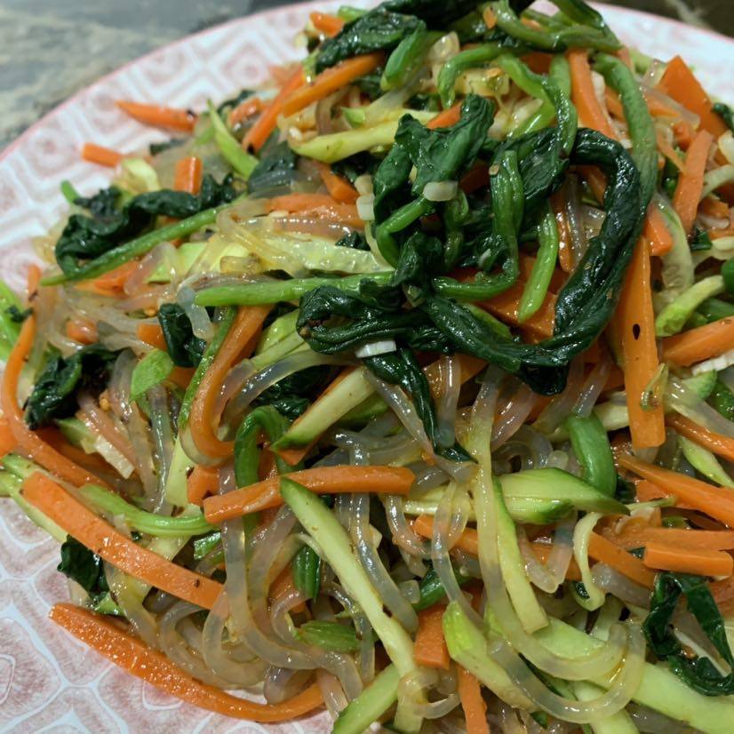 午餐:菠菜🥕胡萝卜拌黄瓜🥒粉条
