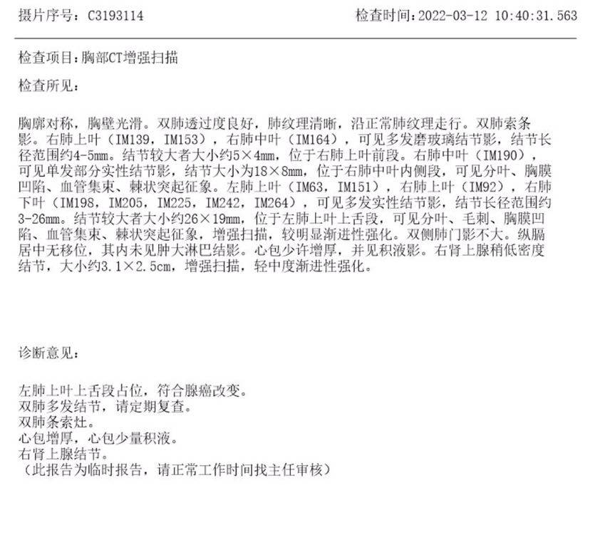 不知道有没有类似经历的朋友,麻烦给一点建议,下面是上个月的检查报告。希望爸爸这次也能够有惊无险的走过去,我们一起加油!