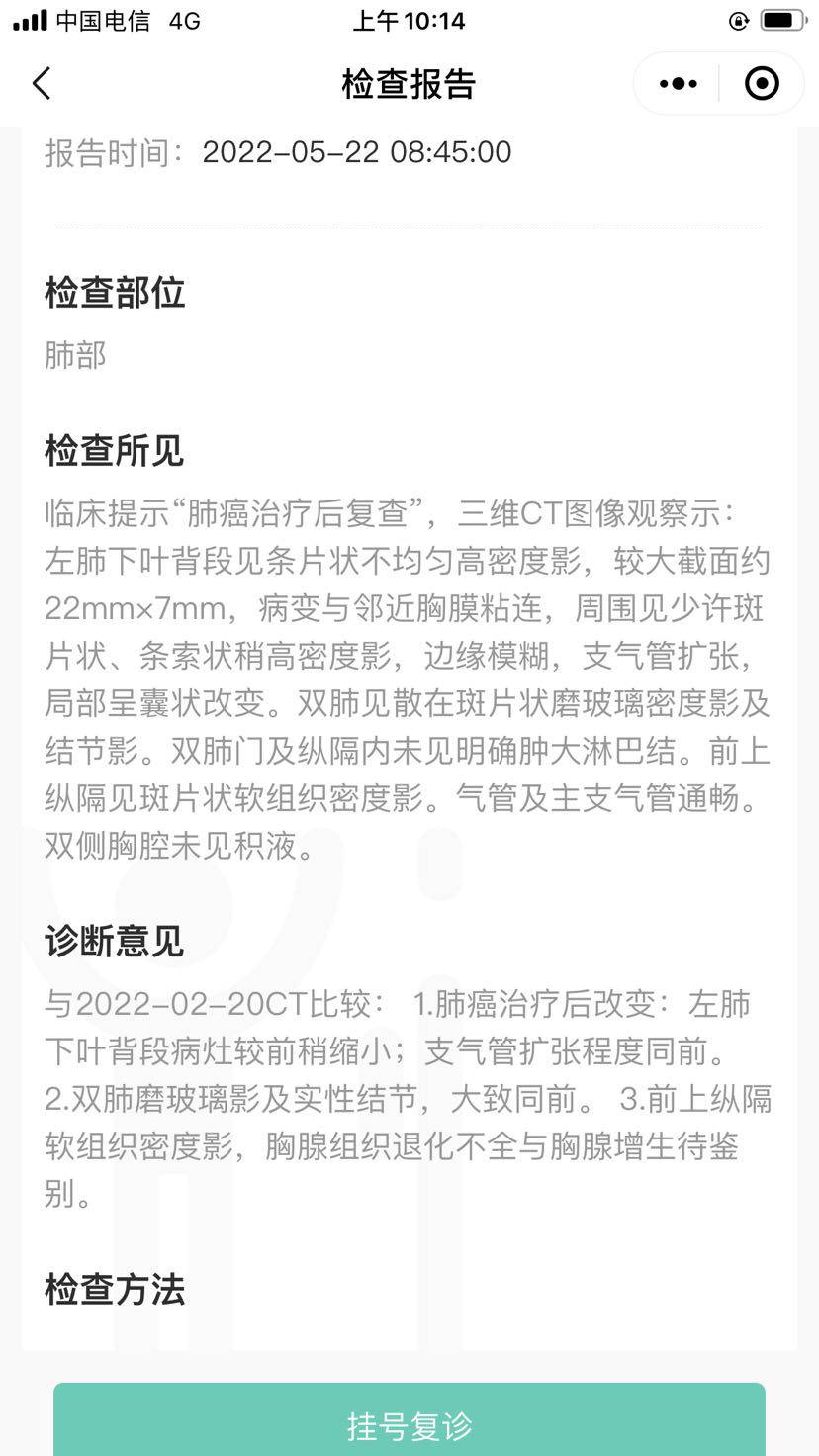 相对2月的CT病灶缩小了一点点,也有可能是测量方式有出入。但总归是稳定的~哥的体感还不错