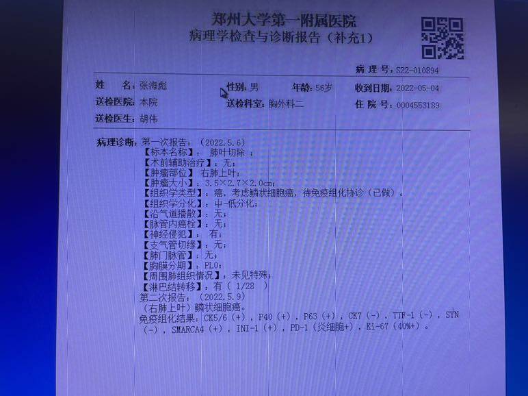 术前应该新辅助化疗加免疫治疗降期再手术会不会要好些,看着好心疼,一起加油
