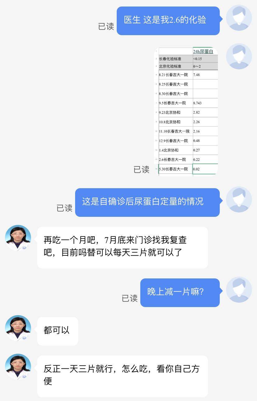 减药的事不死心,于是今天我又挂了我们当地吉大一的风湿免疫科的线上问诊,之前看吉大一的肾内,现在尿蛋白0.02已经正常了我决定转战风湿免疫科。