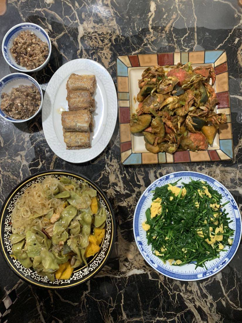 午餐🥣花盖蟹🦀️炒南瓜🎃