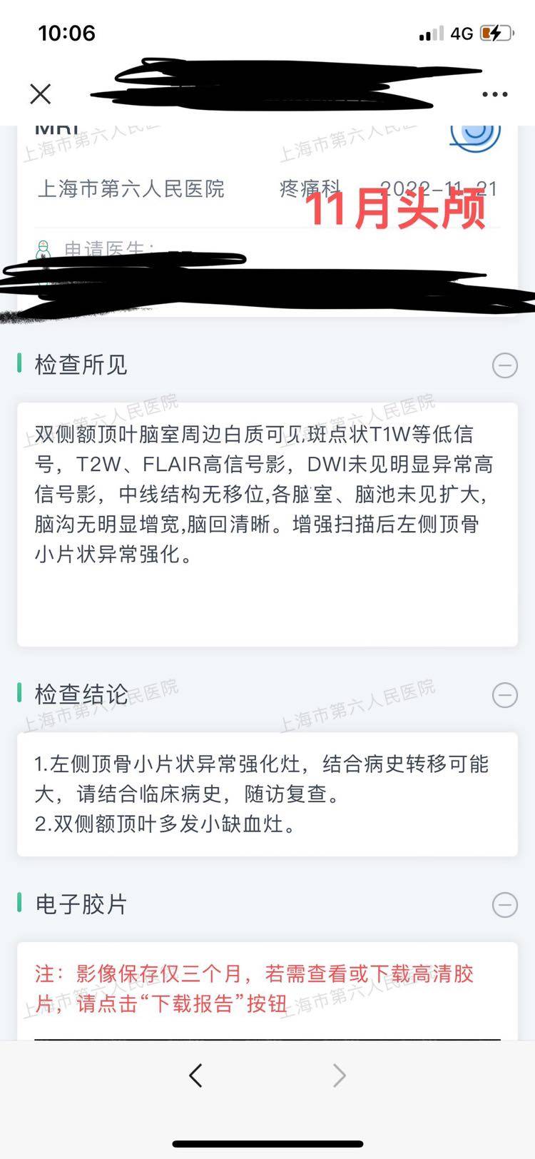 肺腺癌19突变,一线奥西现已耐药,九月份腰椎放过十次疗效果甚微。病人后脑勺疼痛,感觉头很重不能转动,右眼睁不开,眼睛胀看不清东西,打过三天甘露醇效果没有得到缓解。前阵子重新去综合医院挂了一个神经外科的号医生说需腰穿,降压引流。今天复查奥西耐药,肿瘤科医生说需重新做基因检测换药。而这时神经外科医生说先解决脑积水,换药需要时间,脑积水要命!我担心腰穿手术折腾她身体。在之前的医院里医生未和我提及过脑积水。想问一下各位腰穿降压引流与靶向耐药两者情况出现时优先考虑哪一边?🙏🙏🙏🙏附上头颅检测报告