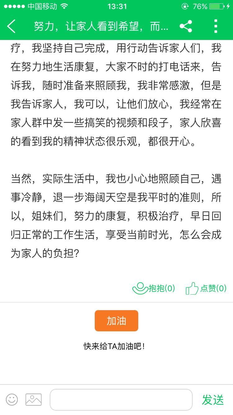 把我们的经验分享给姐妹们,传播正能量,抱团抗癌