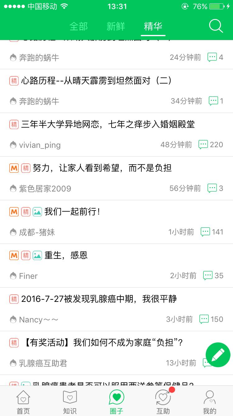 自从乳腺癌互助圈成立以来,很多姐妹们都无私的分享了很多治疗经验、安慰圈子里其他茫然的姐妹让她们走出悲伤!