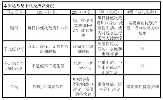 几乎一半的患者在服药后会发生手足综合征,临床表现为麻木、感觉迟钝、皮肤肿胀或者红斑、脱屑、水泡或严重的疼痛。