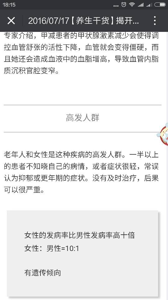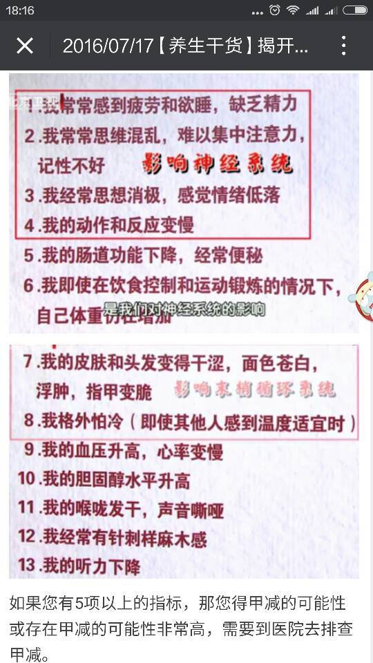 有人发帖说了得了甲减,前几天在北京台看了关于这个病的介绍,让大家了解一下。😃