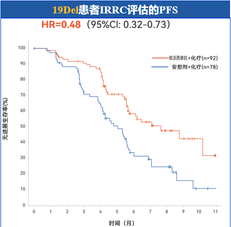 对于EGFR 19Del突变患者,使用依沃西单抗联合化疗可降低疾病进展或死亡风险52%;