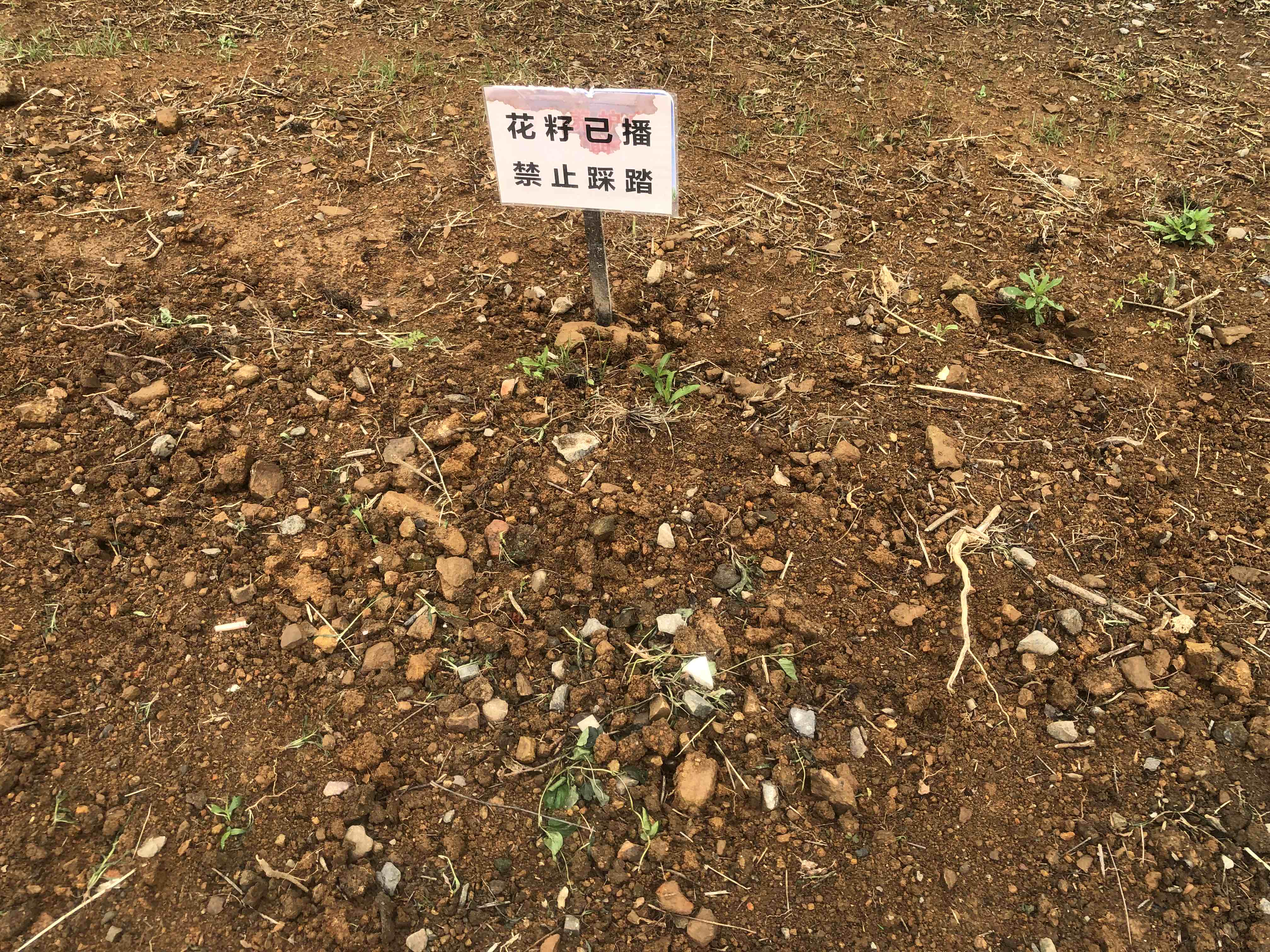今天去散步看到油菜已收走,地上的土疏松好,播上了其它花,期待新的花花。