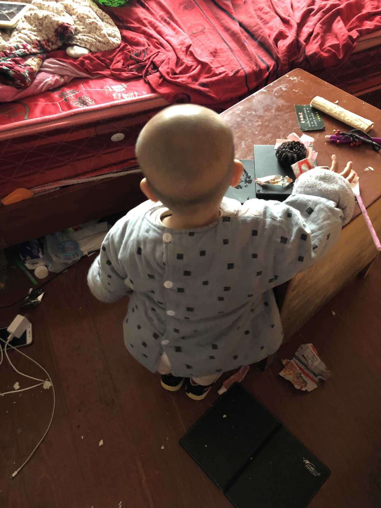 他的小脑袋圆圆的、光光的,好像一个大灯泡