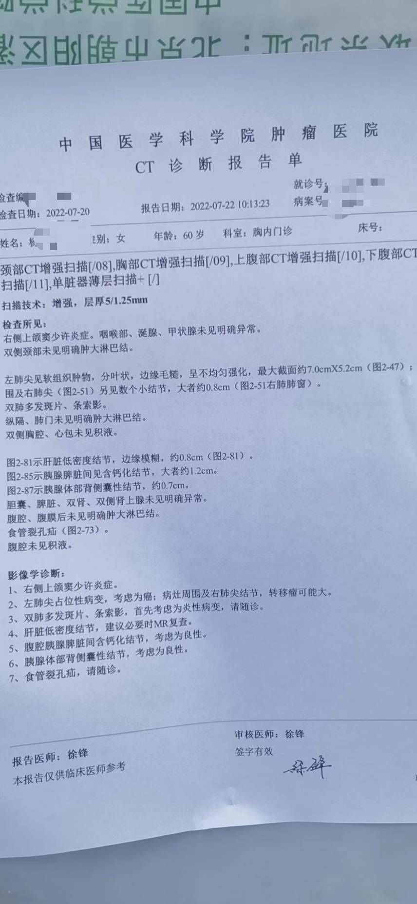 你们挂的中肿的谁的号阿?检查预约了是不是几天以后了。