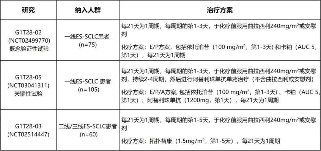 在此之前,G1T28-02[9]、G1T28-05[10]、G1T28-03[11]研究三项随机、双盲Ⅱ期临床试验,已经证明了曲拉西利在预防或减轻化疗引起的骨髓抑制的作用。