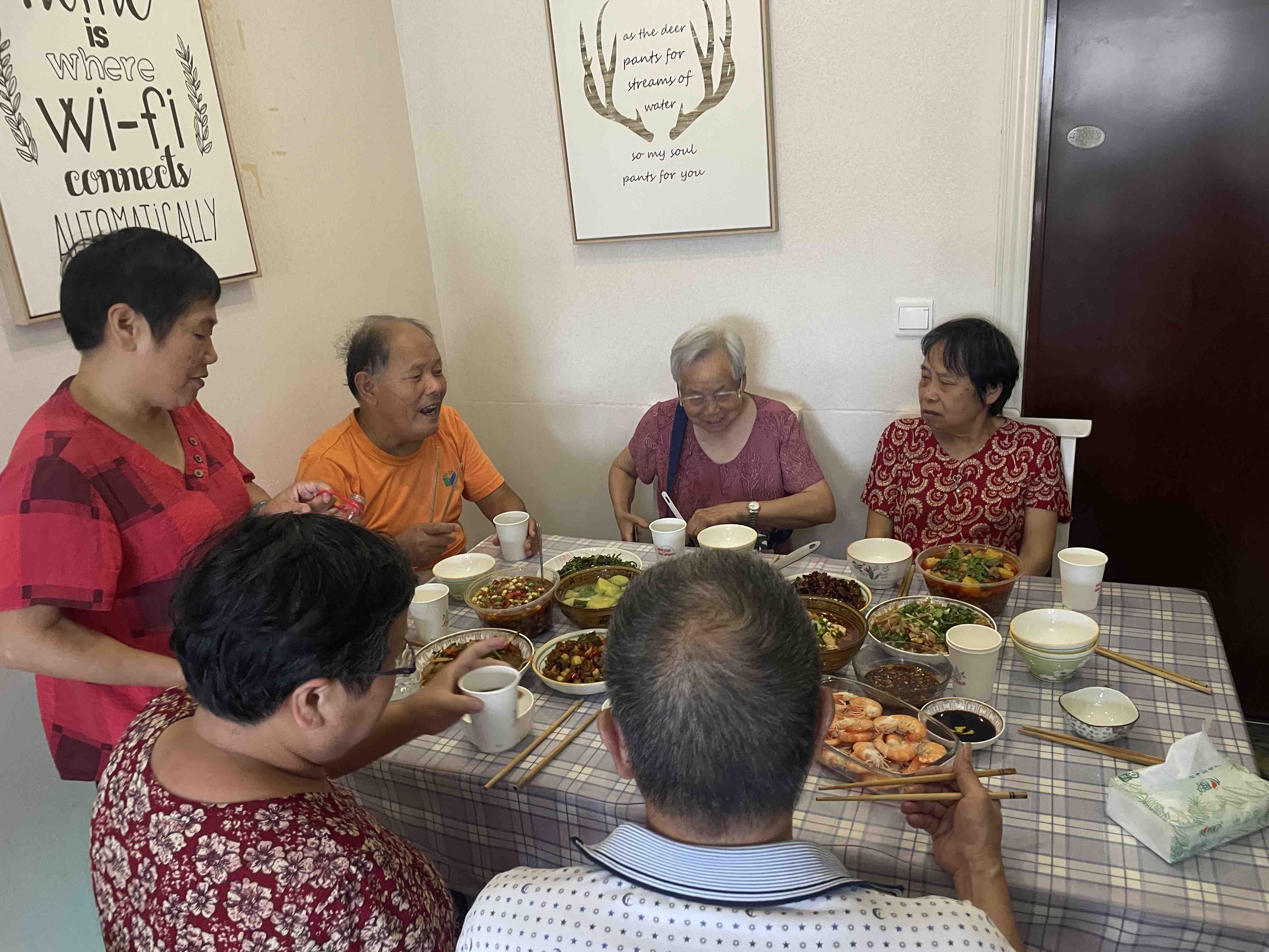 我爸又犯愁了,一是他那里客厅没空调,这么热的天,还有锅碗瓢盆也不足,于是这个任务最后落到我哥家里弄,我家去帮忙。于是我妈妈的四姊妹包括他们的孩子孙子,今天很难得聚得那么整齐。只是我妈的位置换了一个人。