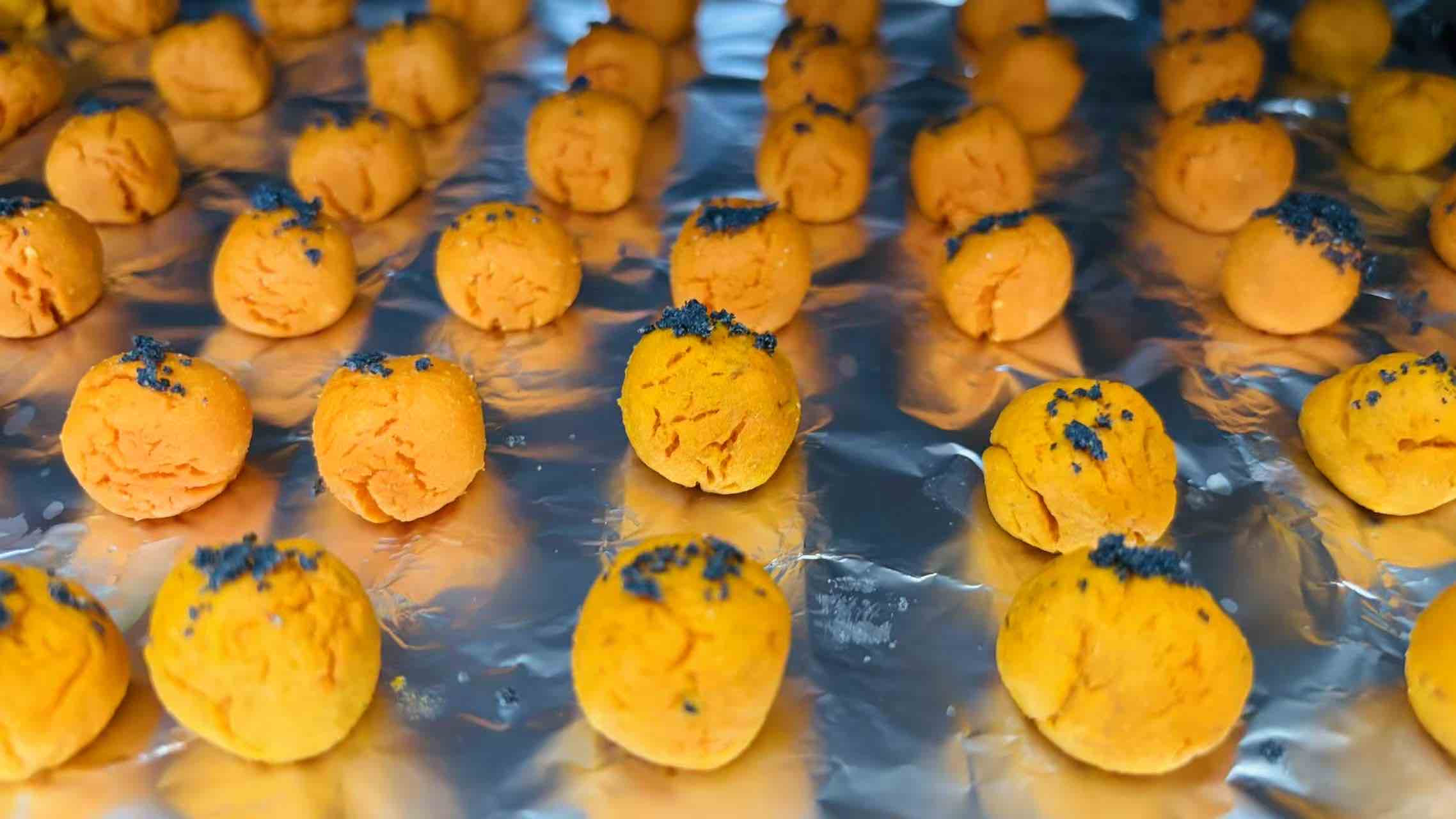 做法:先把南瓜和红薯蒸熟,去皮,用打碎机打成糊,加点糯米粉,用手分成一个一个小球,不要太大,不好烤熟,烤箱180度30分钟。