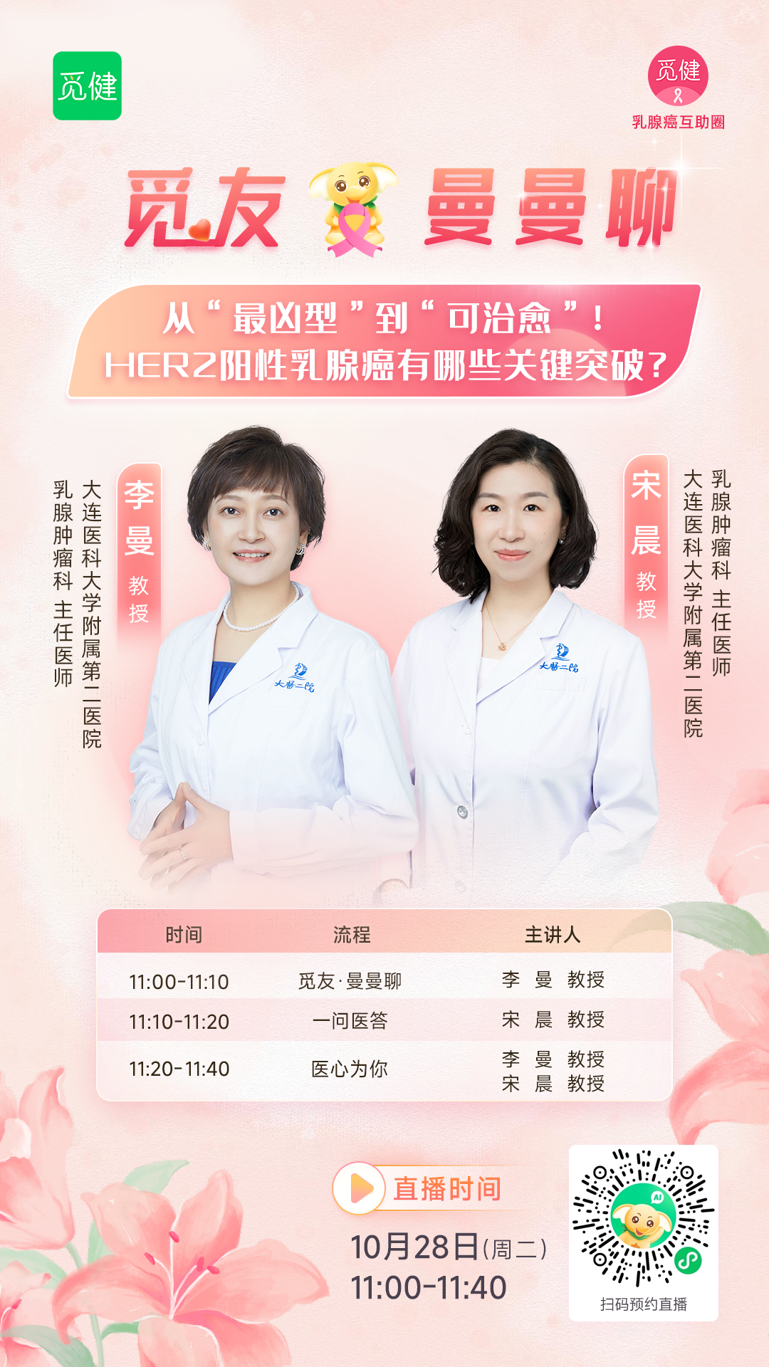 下一期【觅友·曼曼聊】将会带来主题为“从"最凶型"到"可治愈"!HER2阳性乳腺癌有哪些关键突破?”的直播!快长按下方海报,点击识别二维码预约起来吧!