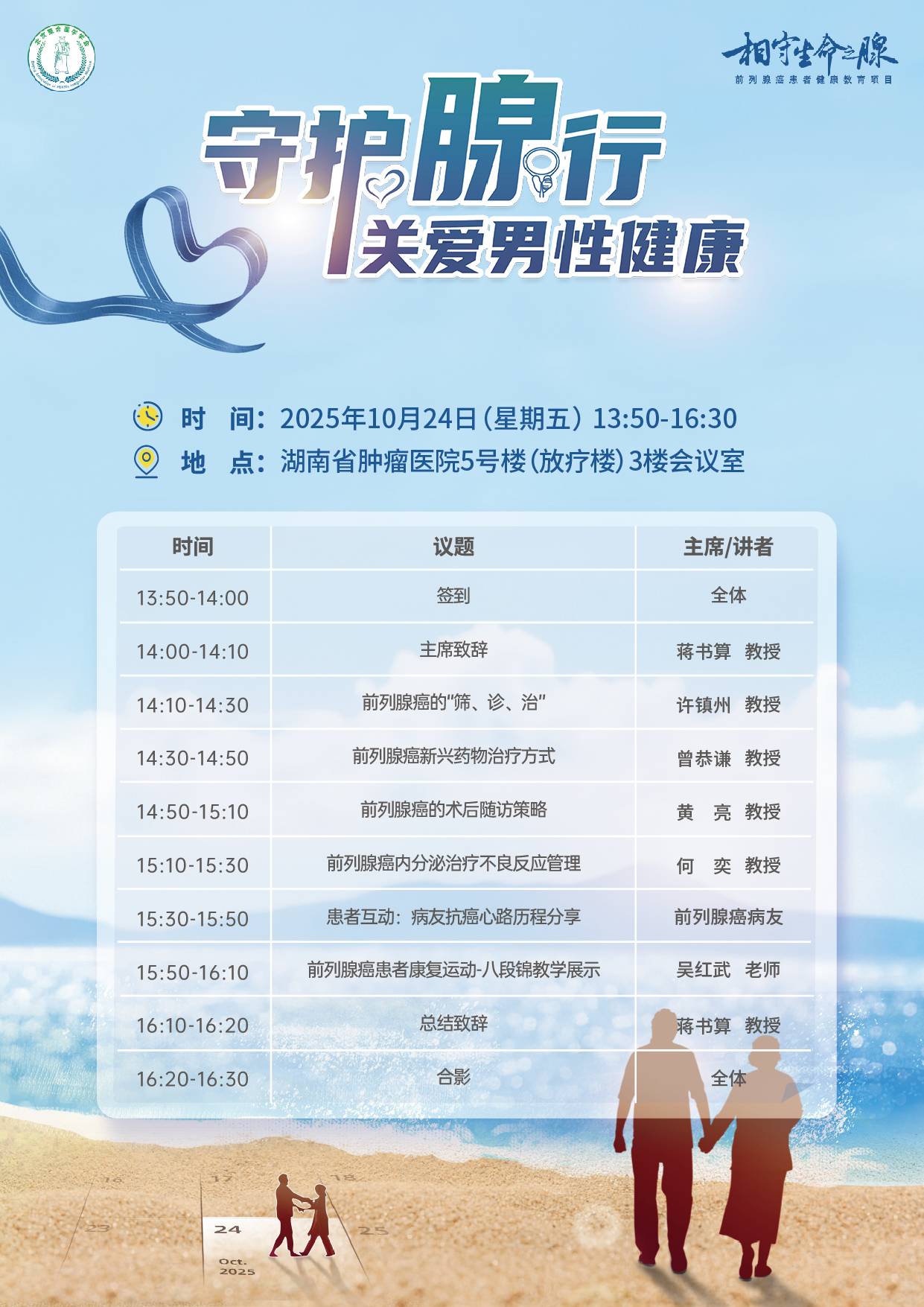 还在为前列腺健康问题焦虑吗?还在纠结前列腺癌的筛、诊、治吗?2025年10月24日(周五)13:50-16:30,湖南省肿瘤医院,一场专为前列腺健康打造的知识盛宴等你来!