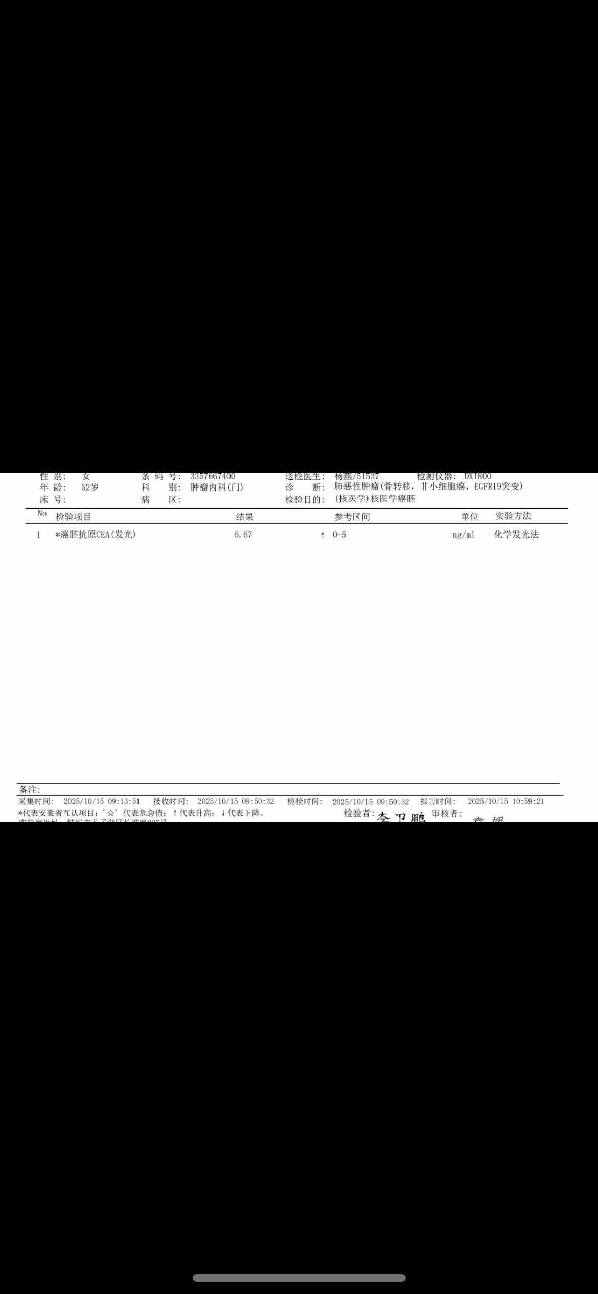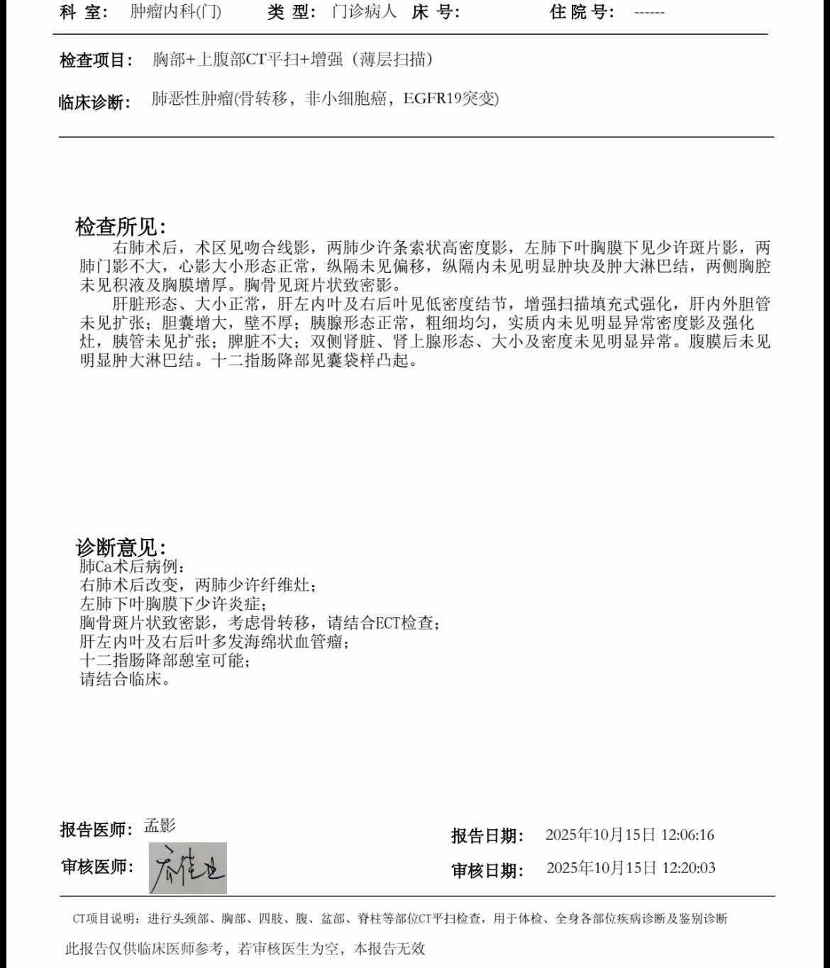 1.诊断:肺腺癌晚期,EGFR 19突变。