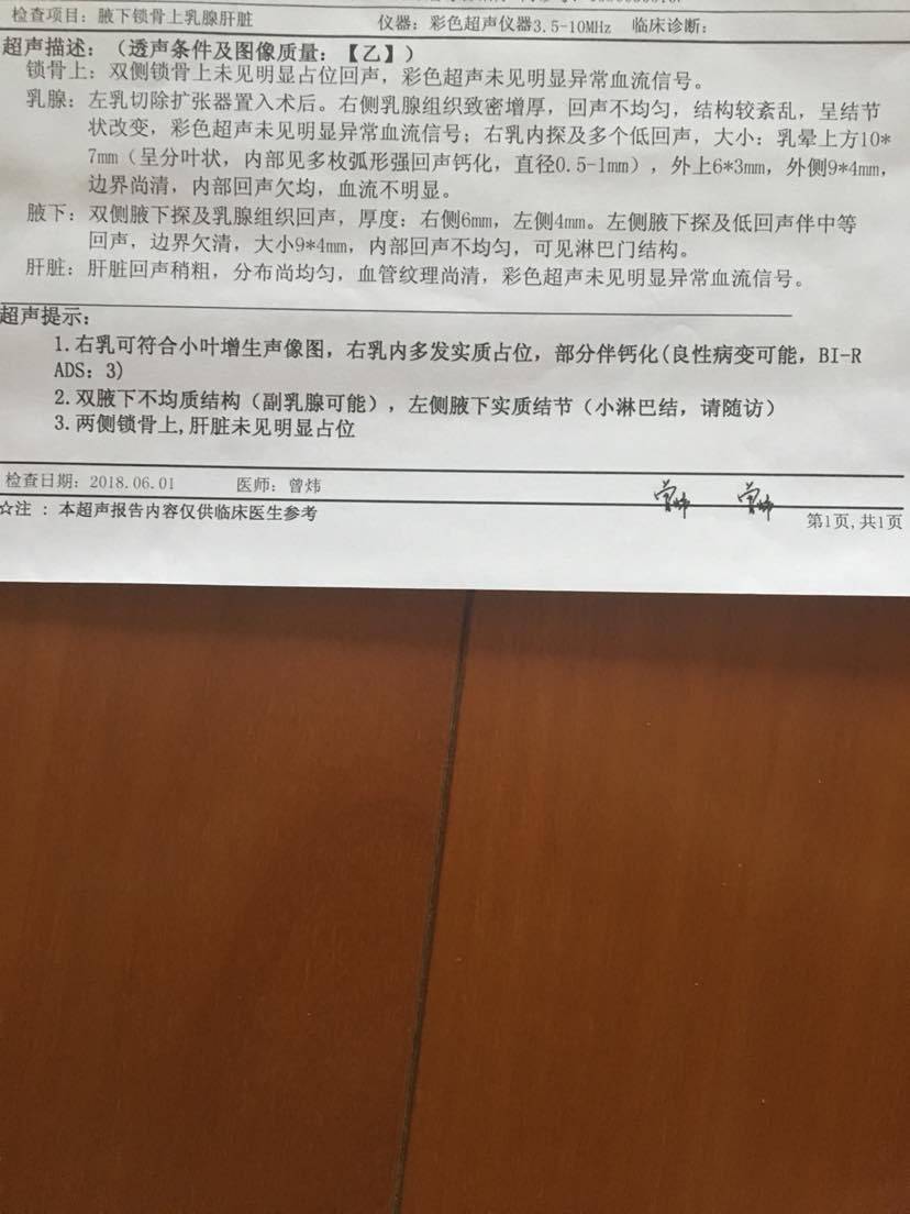 请问你最后问医生了么?我这次复查腋下也有个结节,报告和你几乎一样