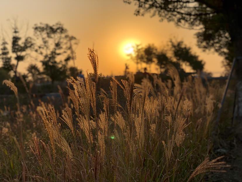 金灿灿的银杏叶化作春泥,狗尾草的软萌,秋水天长共一色,光影衬托着秋更美了,好棒
