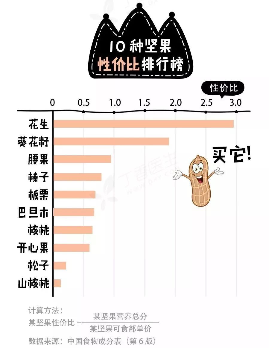 花生瓜子是家里最常见的坚果,不仅营养总分维持在优秀水平,价格还很便宜,性价比爆棚!