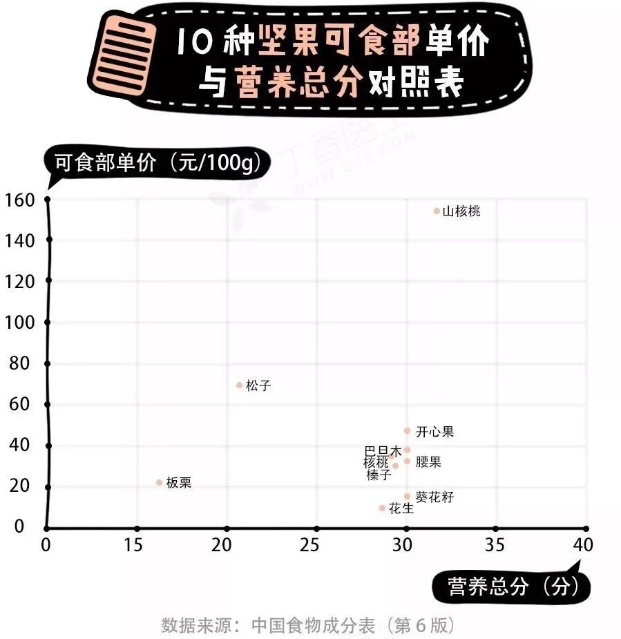 山核桃再一次高调地引起了我们的注意,虽然可食部单价最贵,可是人家的总分也是最高的,充分映证了「贵就是好」的道理!
