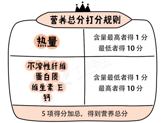 我们沿用上回发明的打分系统,分别给这 10 种坚果的各类营养元素含量打分,营养含量越丰富,分数就越高。