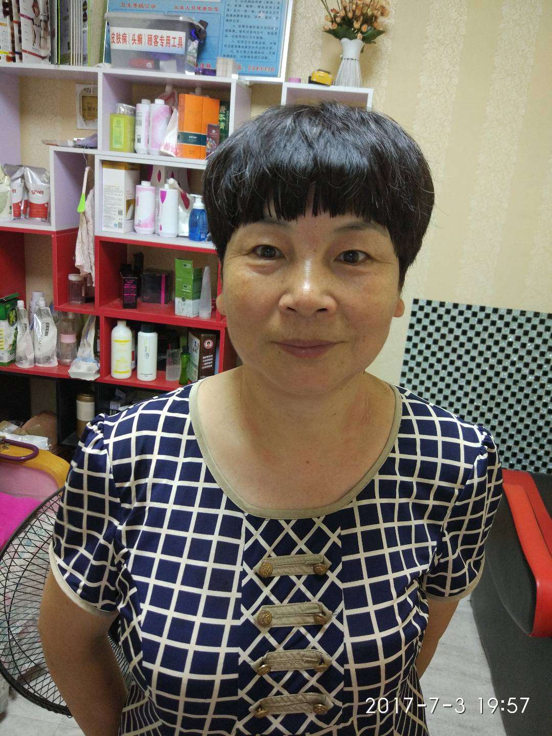 我化疗结束八个月的时候,头发长的像绒毛还有点卷曲,一很心就又剃光了,到六月份才不戴假发了,嗨!