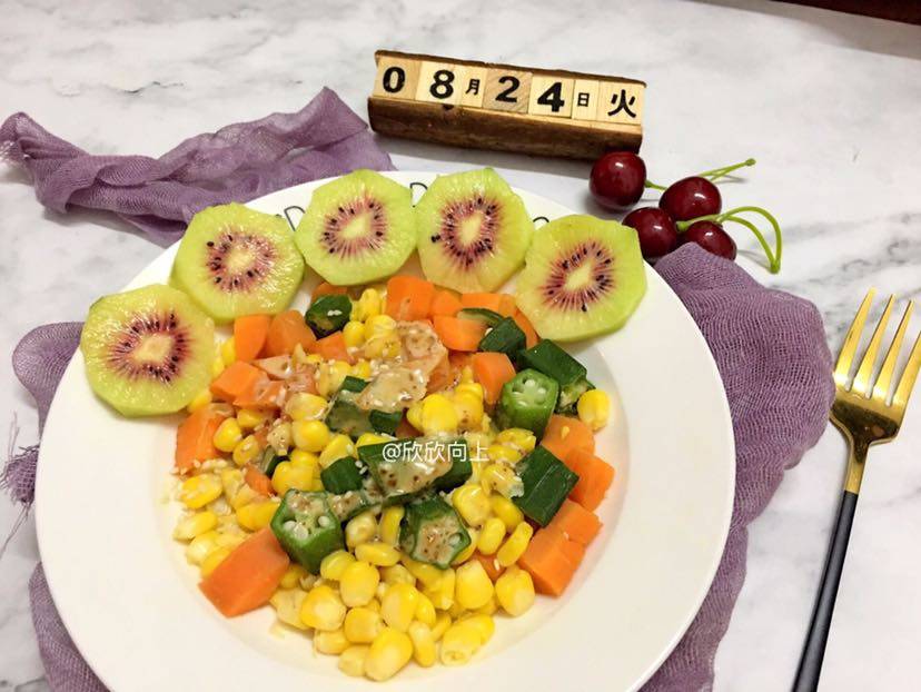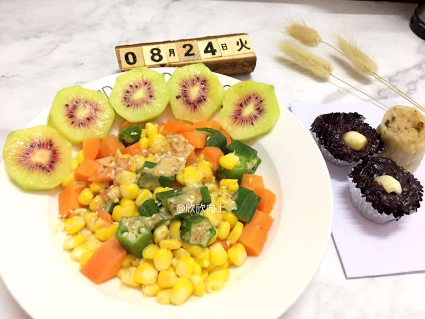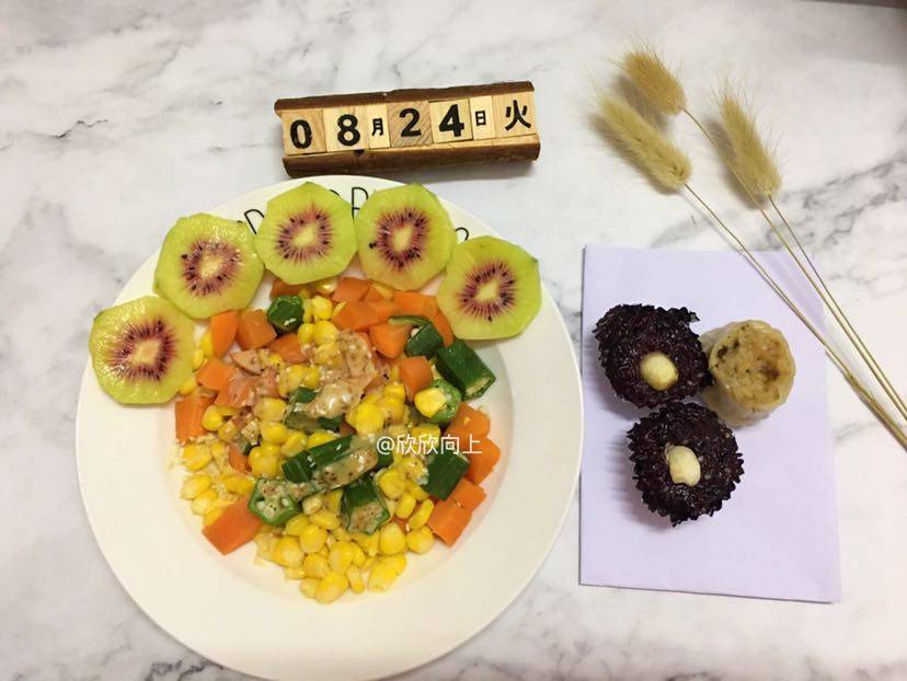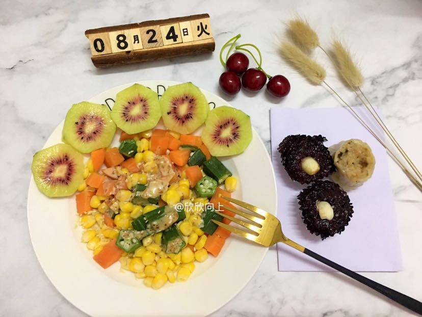 •自制美食篇• 蔬菜沙拉🥗奇异果🥝阿诺黑糯米糕🍰烧卖