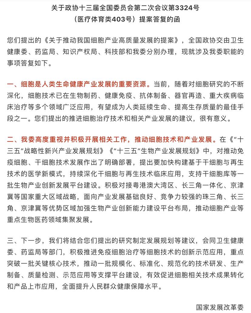 关于推进我国细胞产业高质量发展的提案以及其他