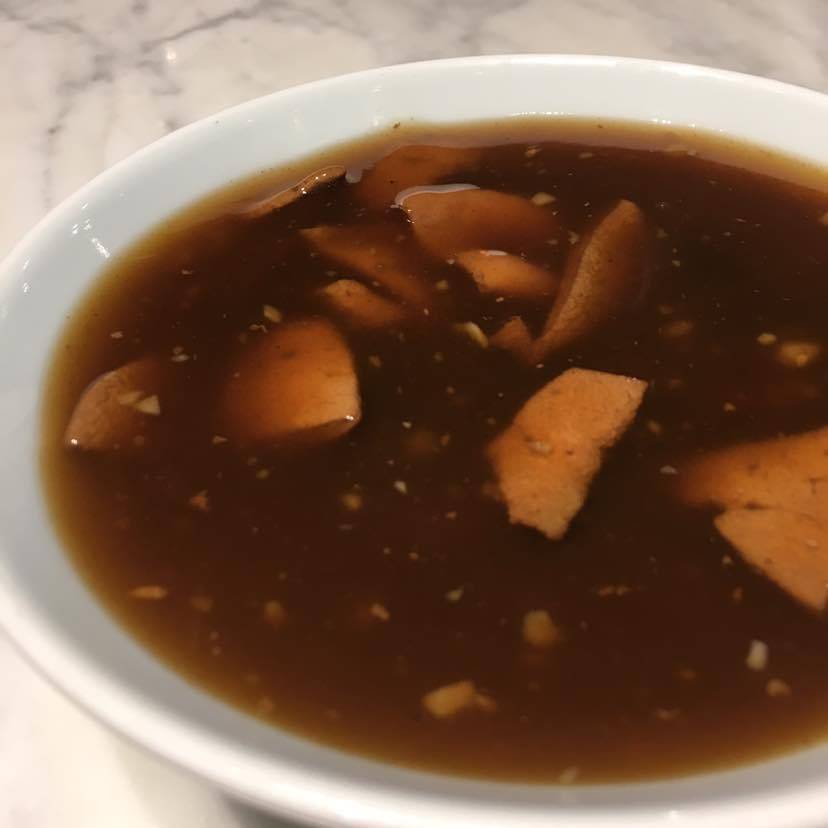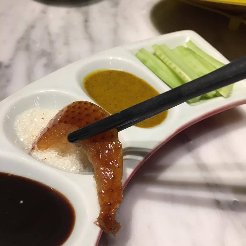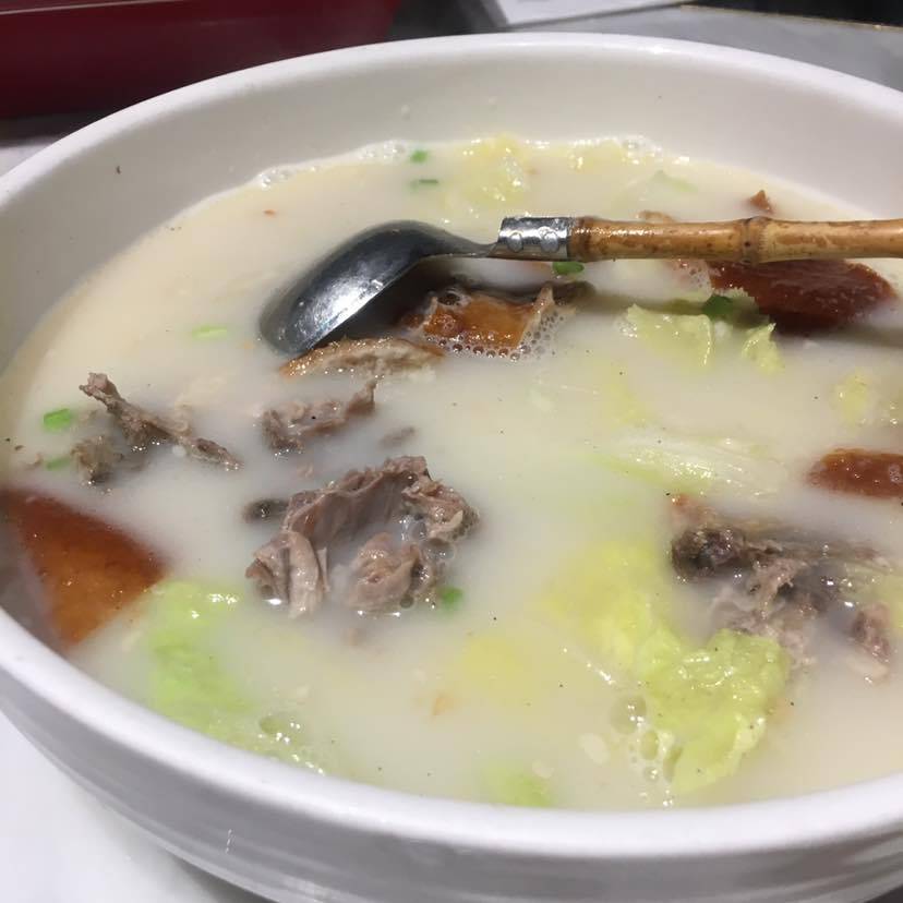 鸭皮吃一块沾糖,再来一块沾芥末。香得很😄鸭架汤也很美味,还有炸灌肠和炒干。