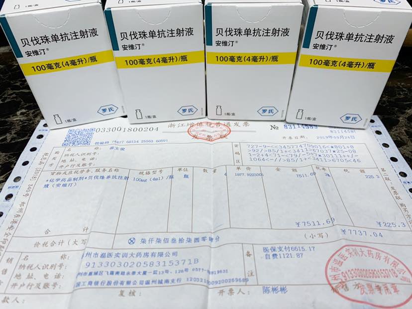 贝伐已赠出两瓶,还剩两瓶。生血宝已全部赠出